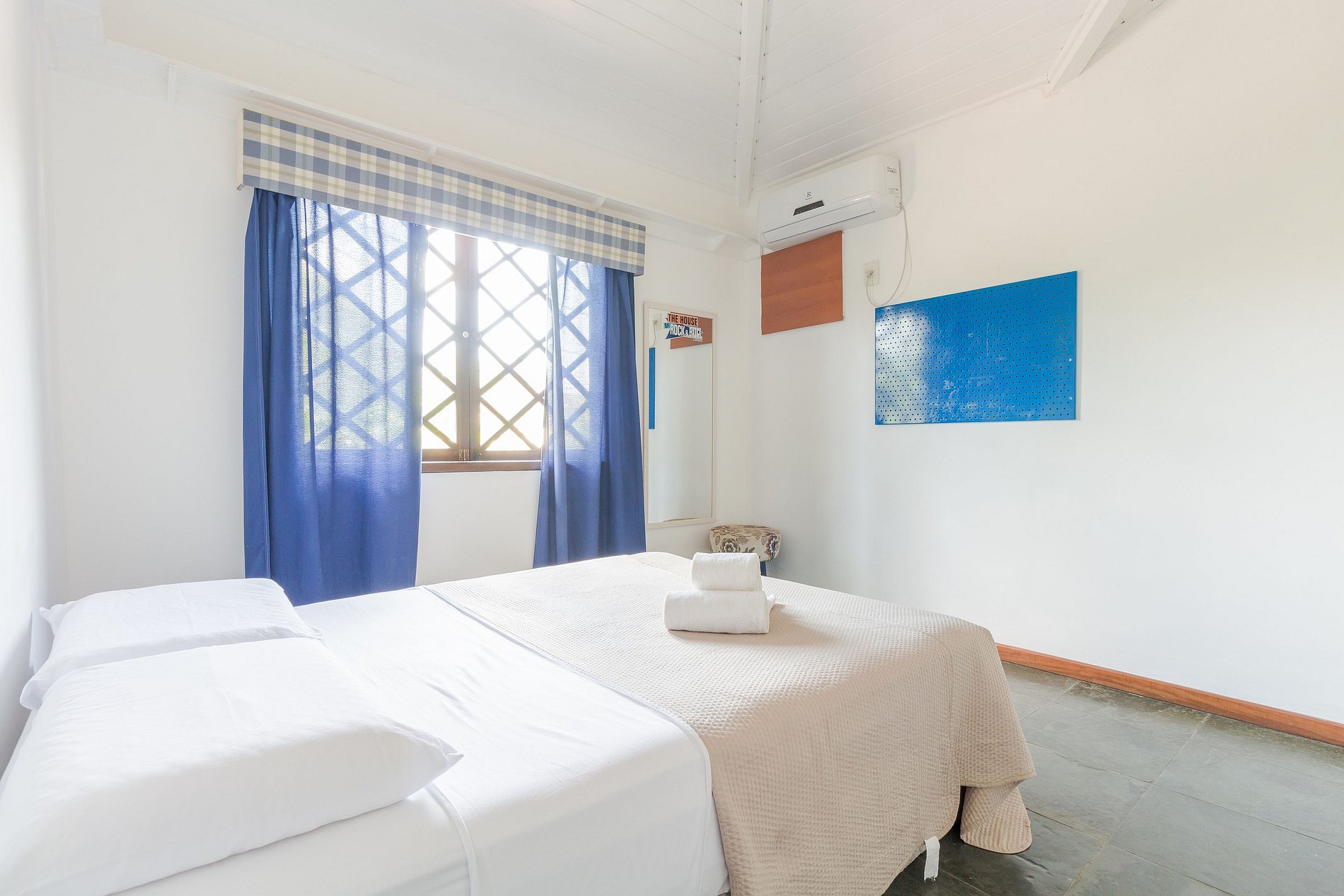 - Quatro suítes com Ar condicionado e ventilador de teto, roupa de cama e banho completa.