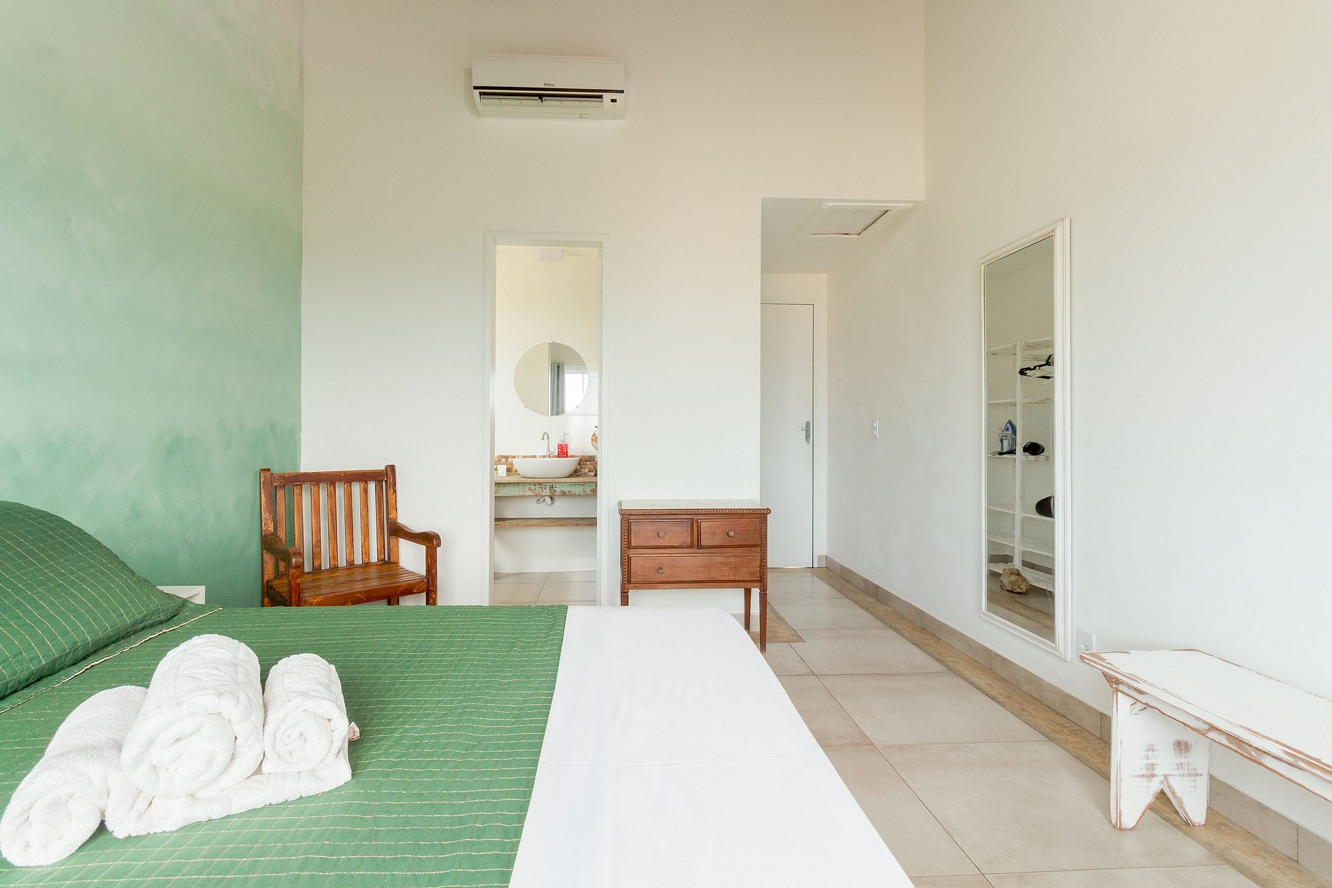 - Duas suítes com ar condicionado e roupa de cama e banho completa.