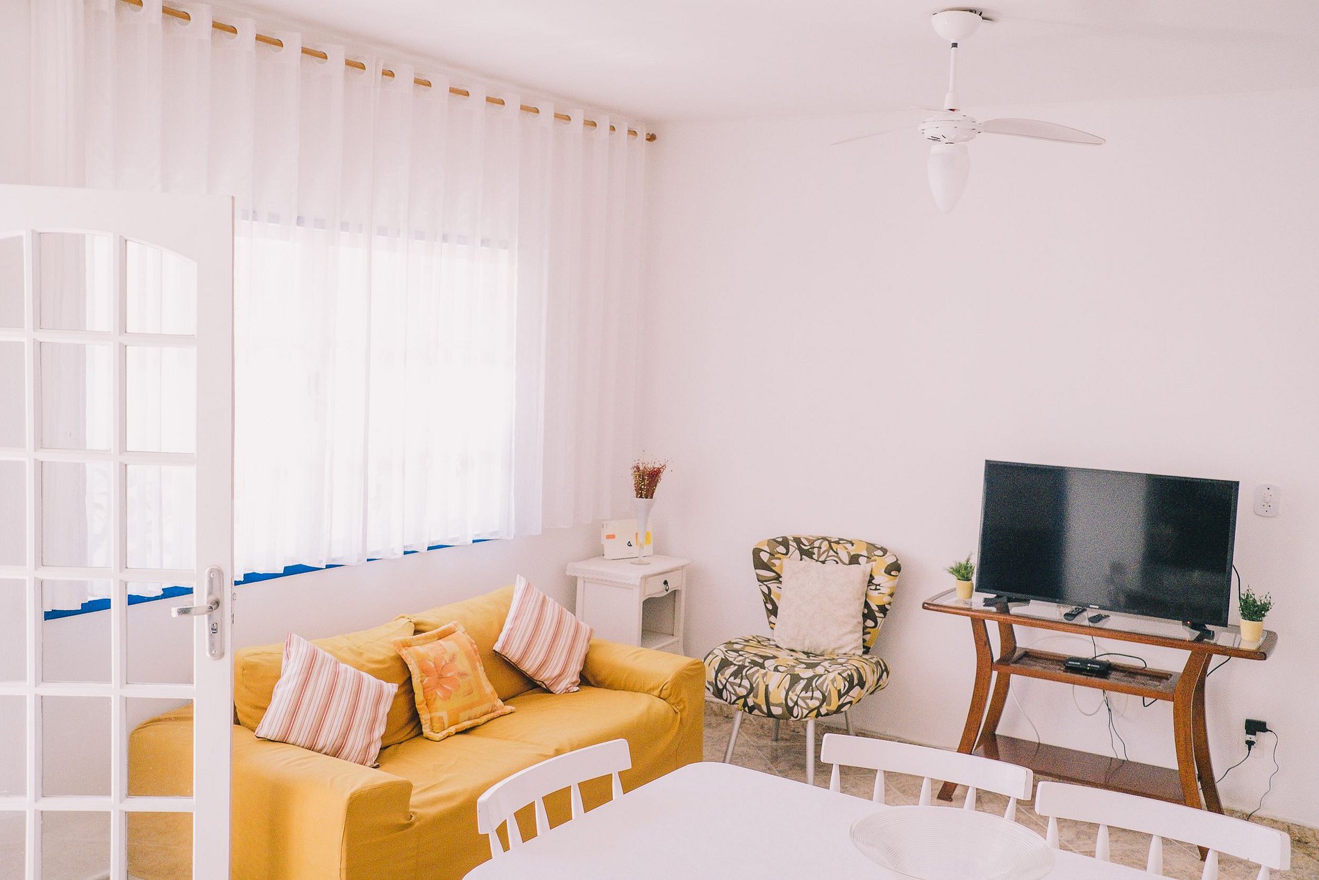 Two suites with queen bed, air conditioning and ceiling fan. One bedroom with queen bed, air conditioning and ceiling fan. Large TV room, dining room, kitchen, living room and service area. Independent entrance with external balcony. We provide bed and bath linen.