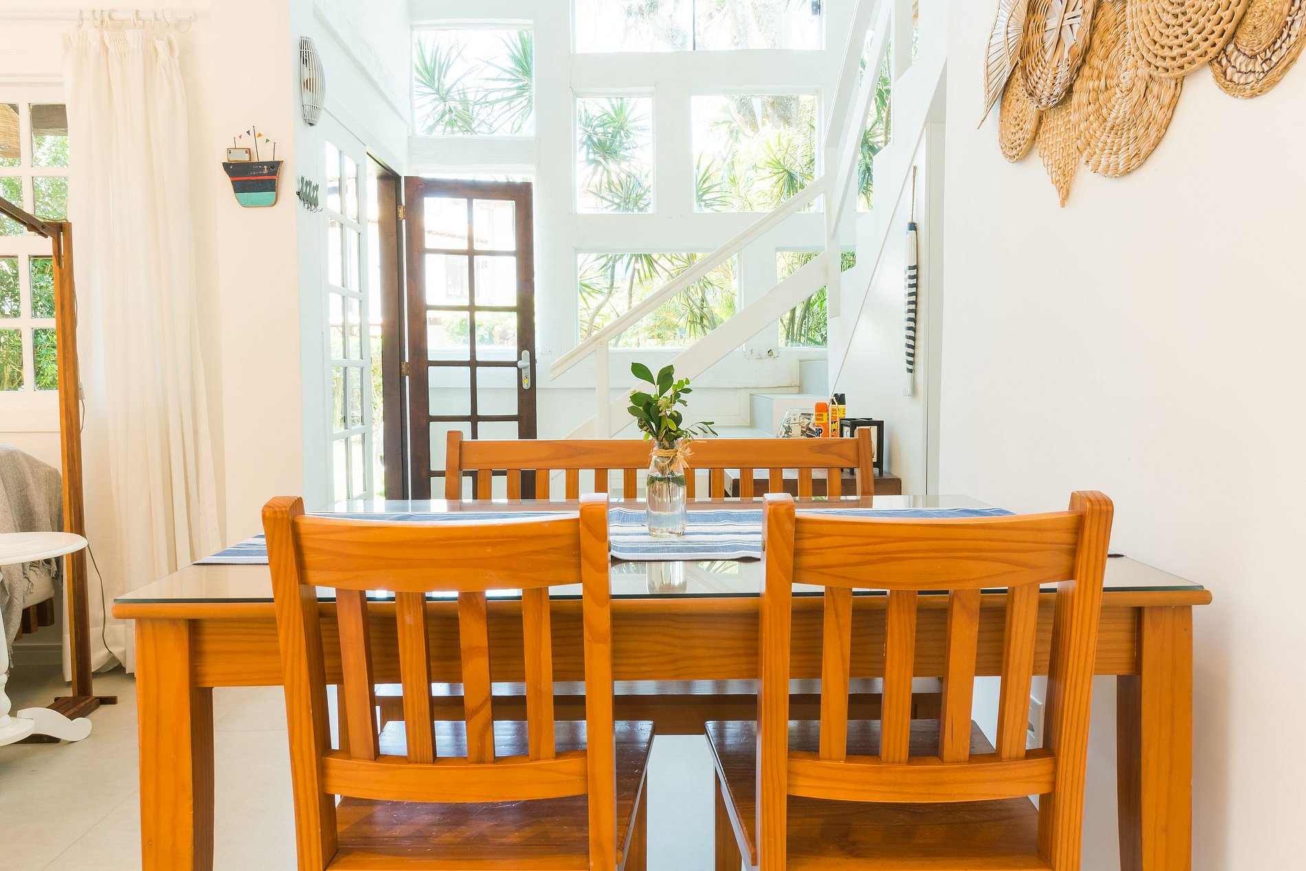A acomodação possui uma suíte e um quarto, os dois no segundo pavimento (com acesso exclusivo por escada). No térreo, uma pequena varanda de entrada dá acesso à casa onde sala de TV, cozinha e sala de jantar se integram em ambiente acolhedor. Arejada e repleta de iluminação natural, a casa ainda conta com uma charmosa varanda com churrasqueira que é garantia de bons momentos, seja em família ou entre amigos.