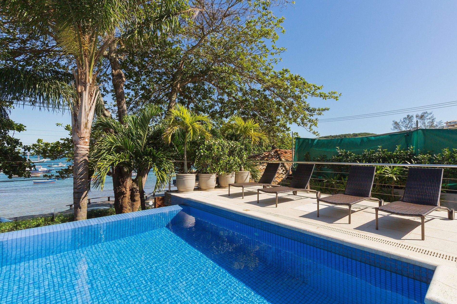 Piscina infinita frente a Orla Bardot y Praia da Armação, sauna, gim, 2 estacionamientos y un acogedor jardín, todo en el condominio donde se ubica la casa. A pasos de la playa y en el lugar con más encanto de Búzios.