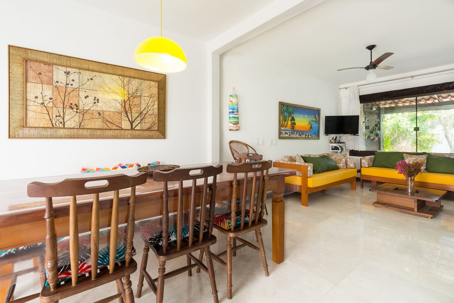 Desfrute do conforto em uma típica casa de praia, situada em condomínio exclusivo a poucos metros do canto esquerdo de Geribá e da praia da Ferradurinha. É ideal para o descanso entre família e/ou amigos. A casa conta com internet, espaço de trabalho, área gourmet com churrasqueira, duas vagas de estacionamento e uma confortável varanda na entrada, repleta de sombra e verde. Piscina compartilhada do condomínio.