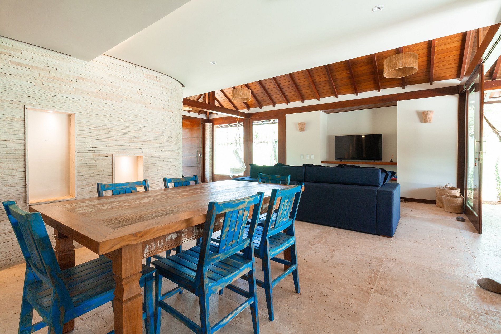 - Sala de TV, sala de jantar e cozinha integrados.