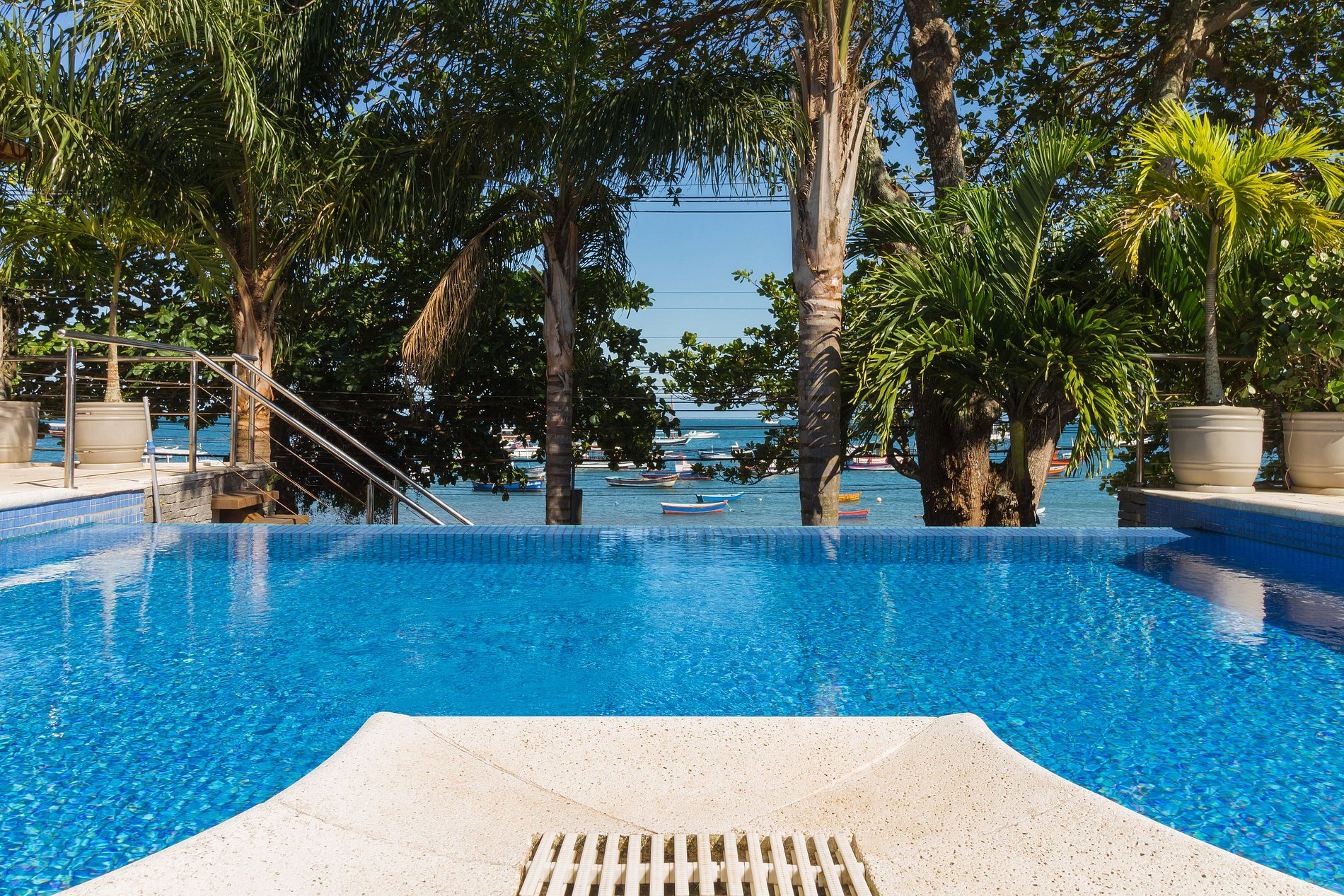 Piscina de borde infinito frente a Orla Bardot y Praia da Armação, sauna, gim, restaurante y un acogedor jardín, todo en el condominio donde se encuentra la casa. A pasos de la playa, y en el mejor lugar de Búzios.