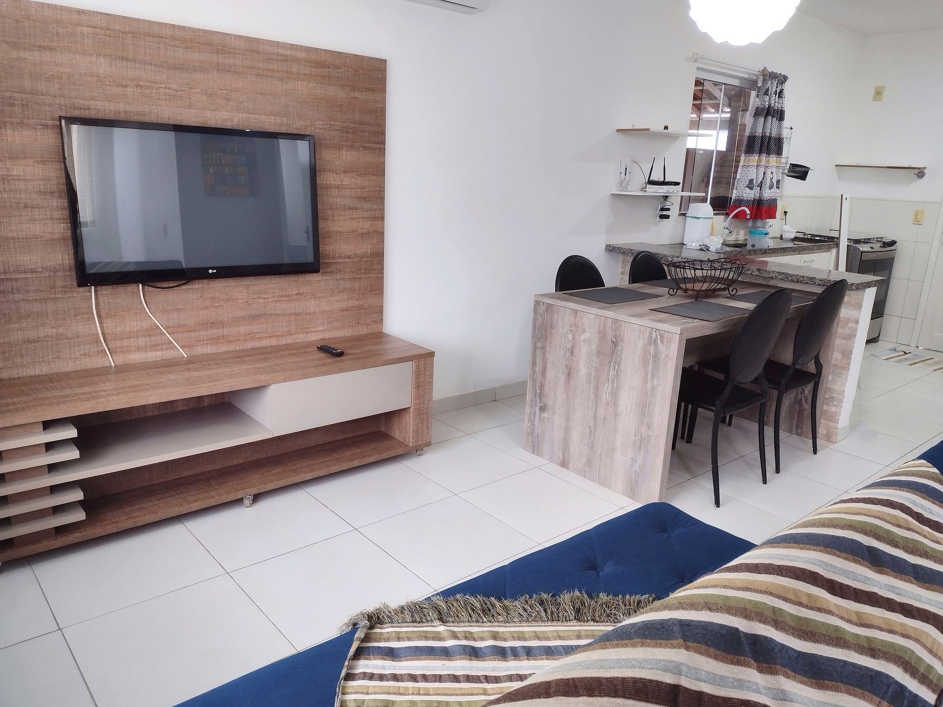 - Duas suítes e um quarto com ar condicionado, roupa de cama e banho completa.