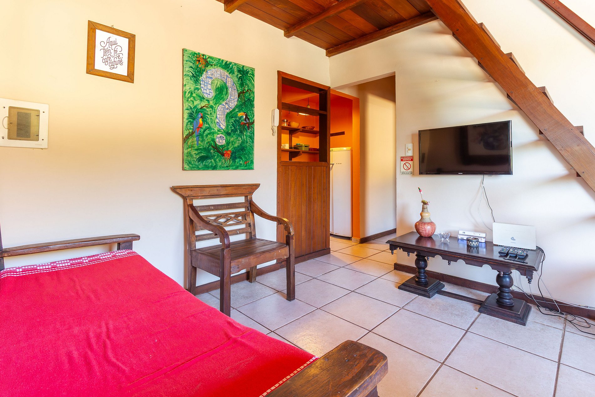 Apartamento simples, com arquitetura buziana e construção dos anos 90, porém muito bem cuidado e ideal para hóspedes que buscam estar no coração de Búzios, a poucos passos da praia, da Rua das Pedras, restaurantes, lojas e passeios.