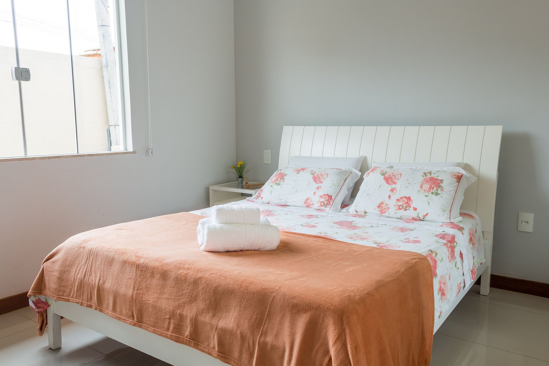 Casa independente e exclusiva, arejada, confortável, com boa localização e segurança. Possui 3 suítes, todas com ventilador de teto e ar condicionado, e duas com tv.