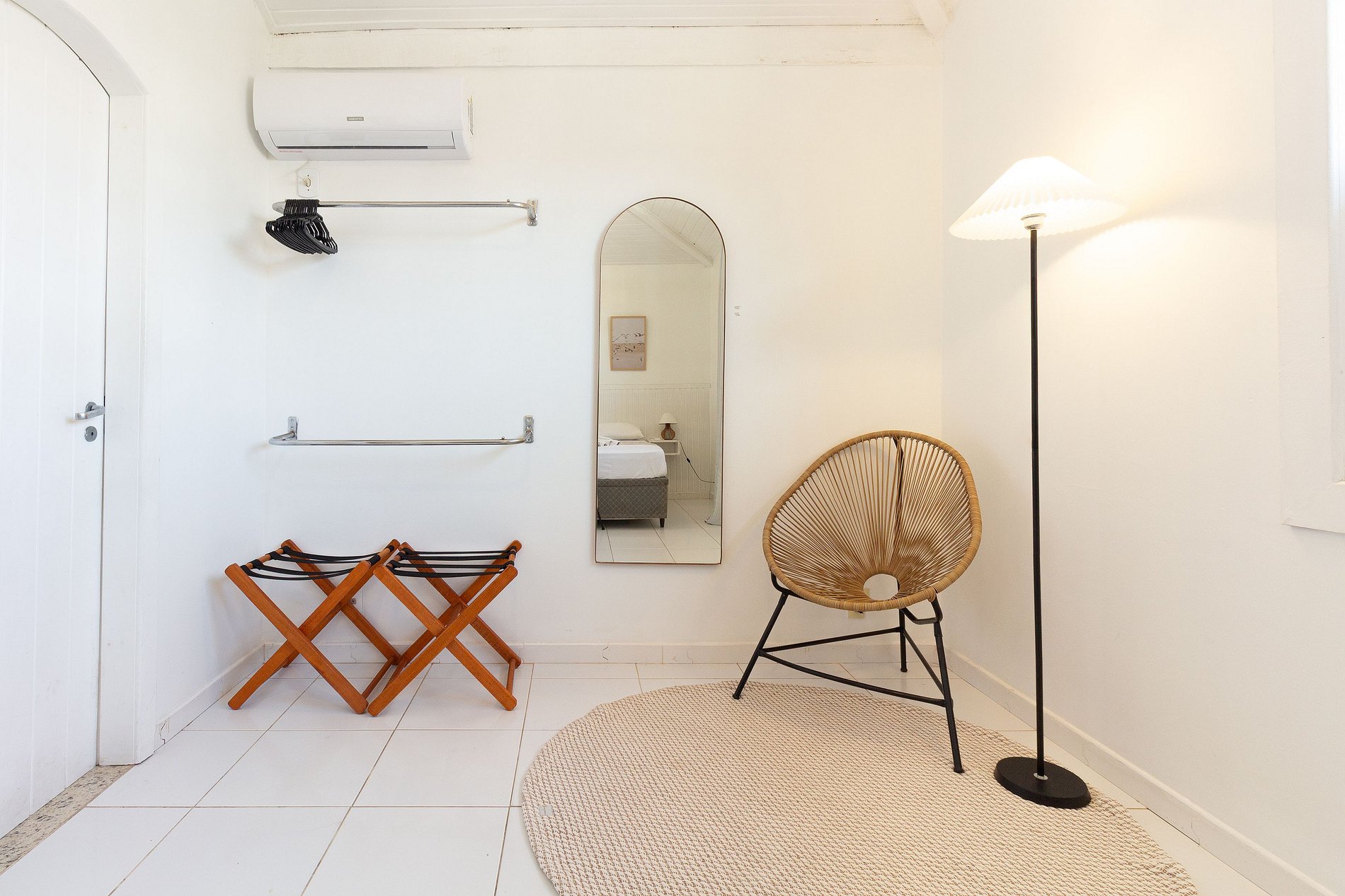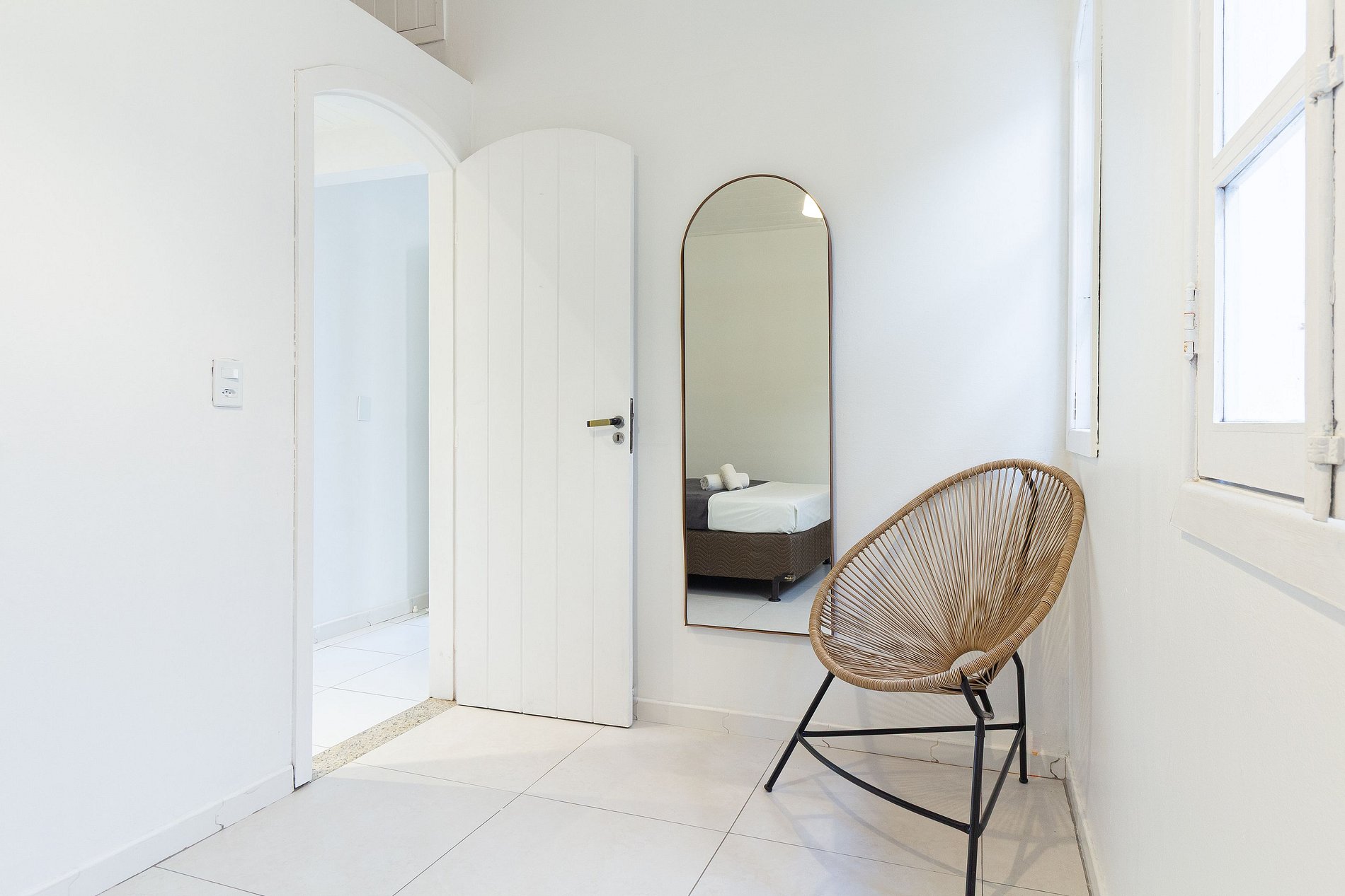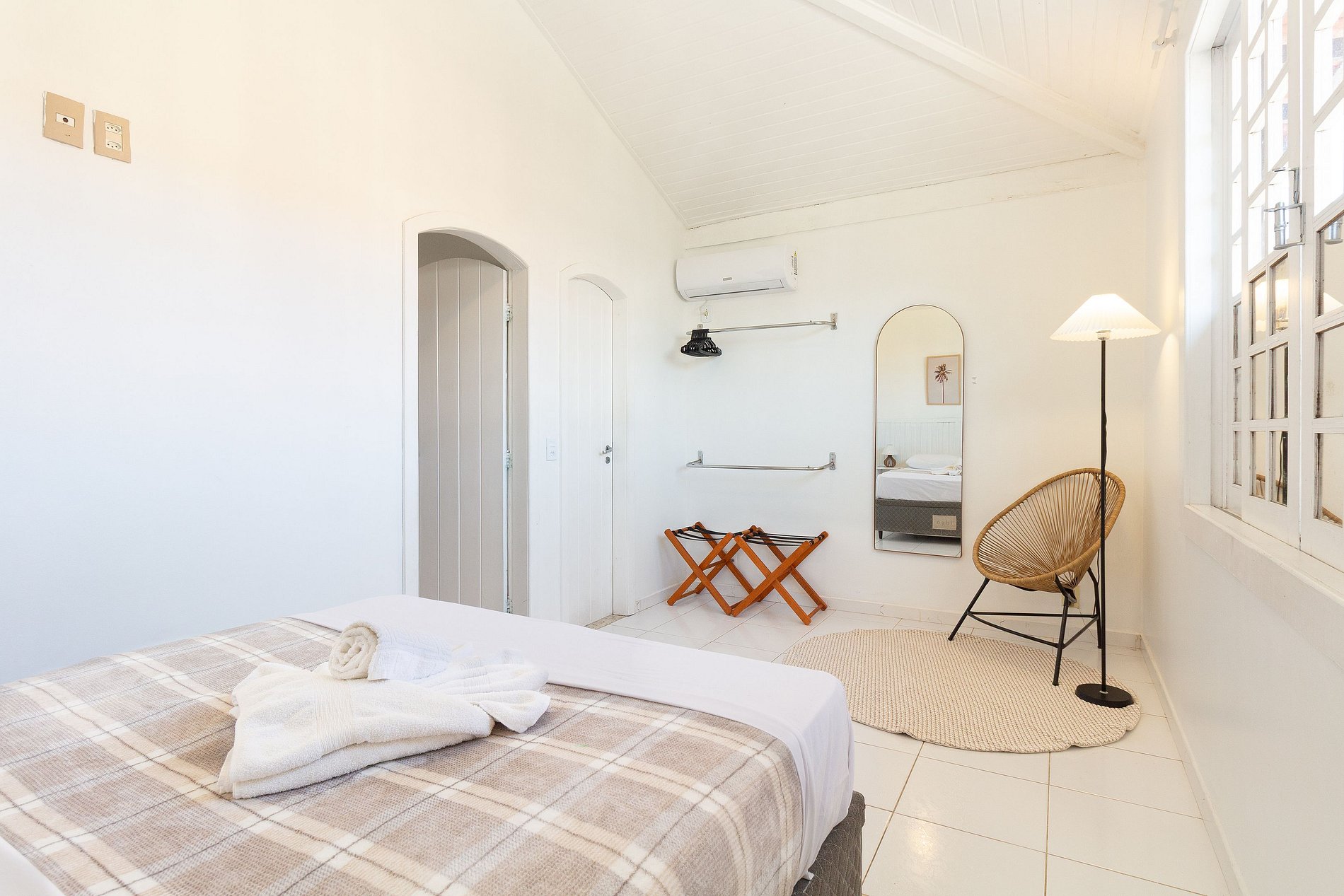 Arquitetura praiana, com grandes janelas e boa ventilação. Quartos confortáveis com ar condicionado para os dias mais quentes e uma varanda aconchegante para aproveitar um pós-praia na rede. Apartamento no segundo andar com acesso por escada. Possui uma suíte e um quarto. Chuveiros dos banheiros com instalação a boiler, garantindo banhos com boa pressão e bem quentes. Casa recém reformada, voltou recentemente para o aluguel por temporada.
