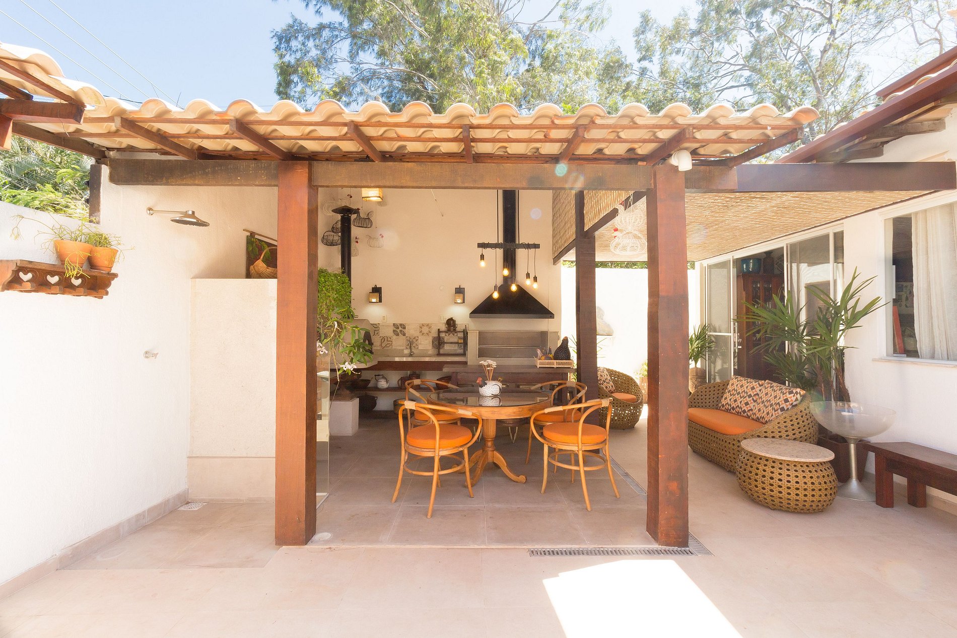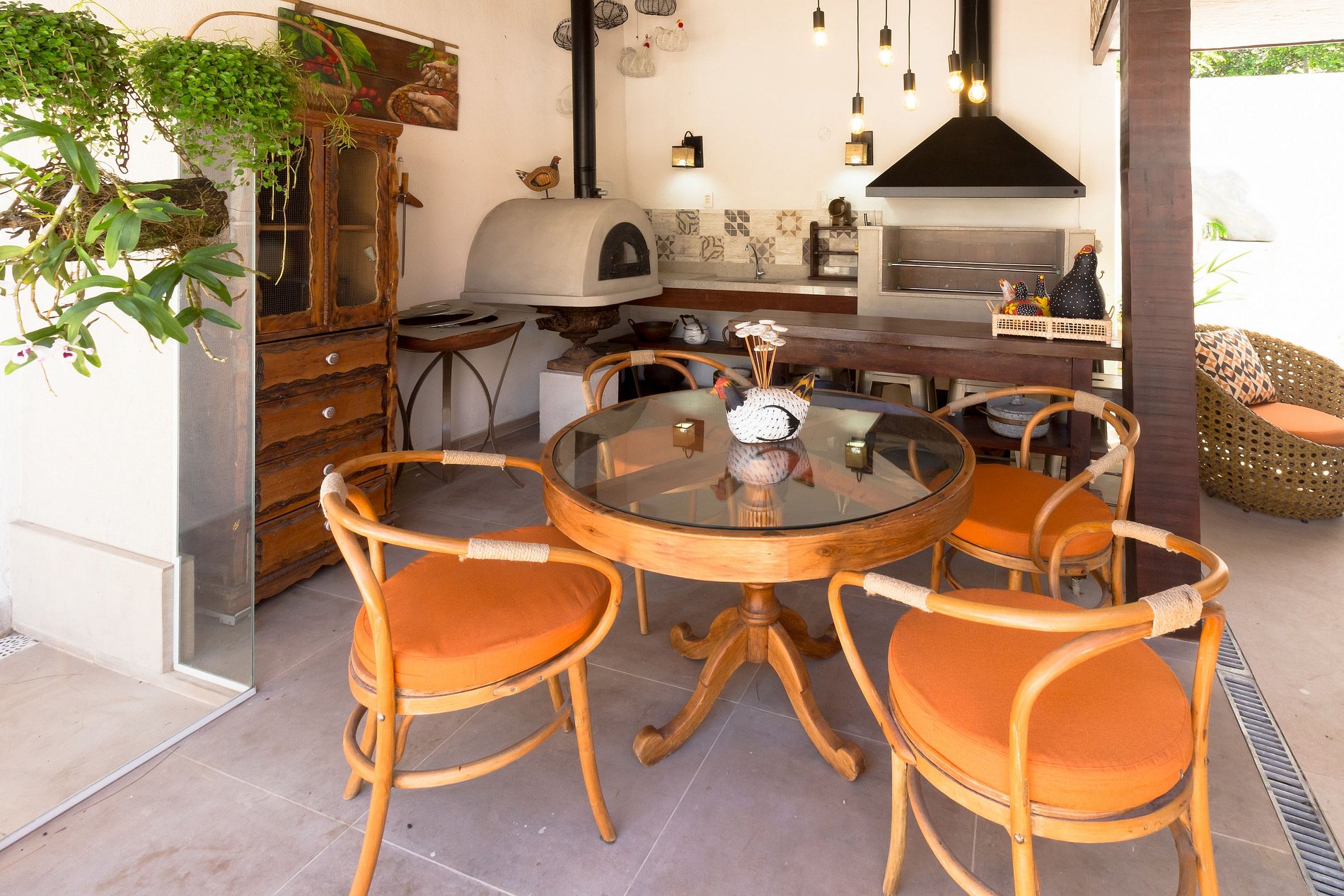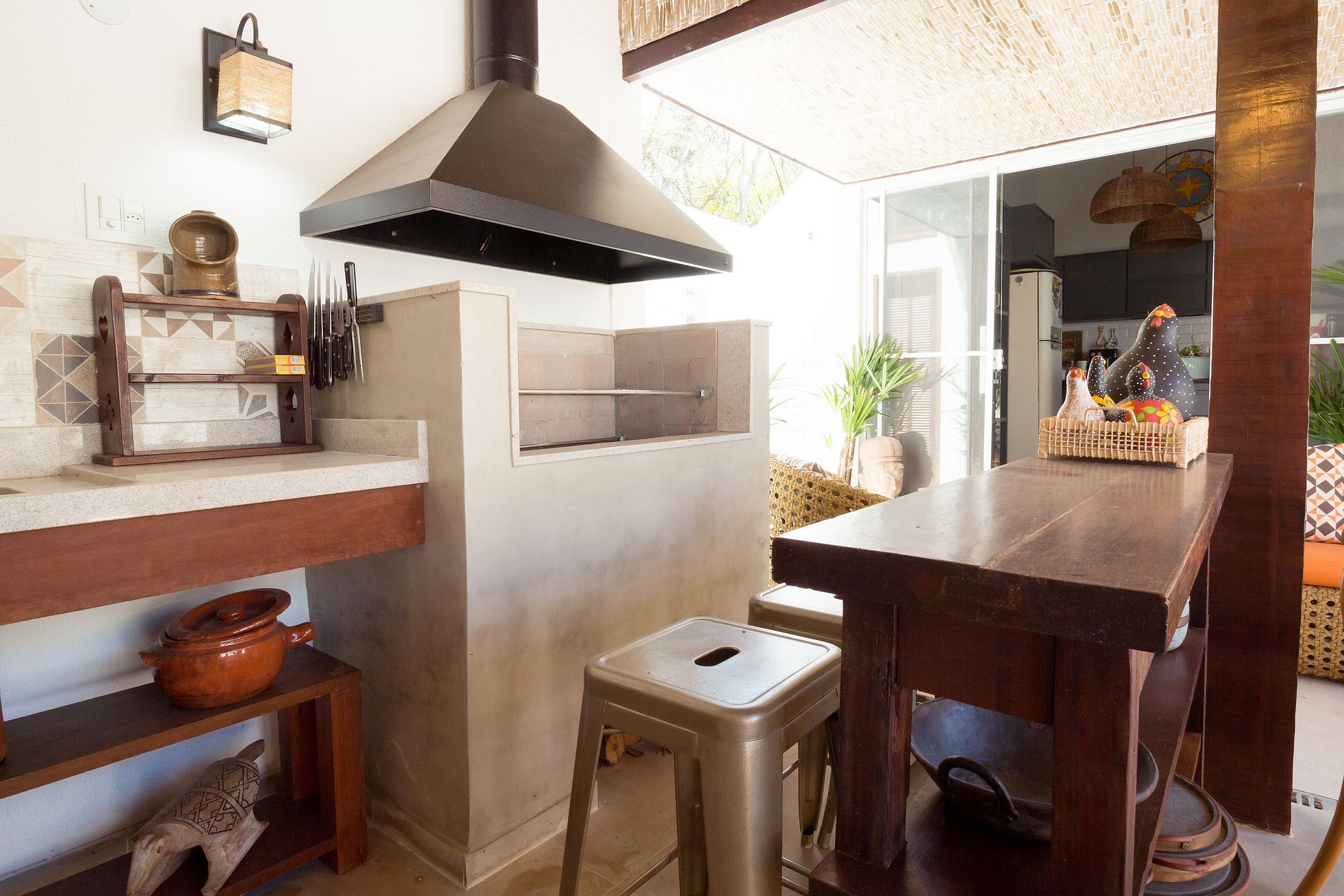A área da churrasqueira é compartilhada com a casa da proprietária, que fica no térreo.