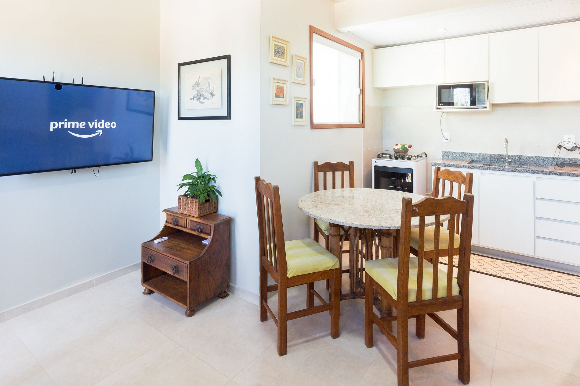 O flat é totalmente privado. O acesso, garagem e área da churrasqueira é compartilhada com a proprietária do imóvel. Utilização da churrasqueira sujeira a disponibilidade.