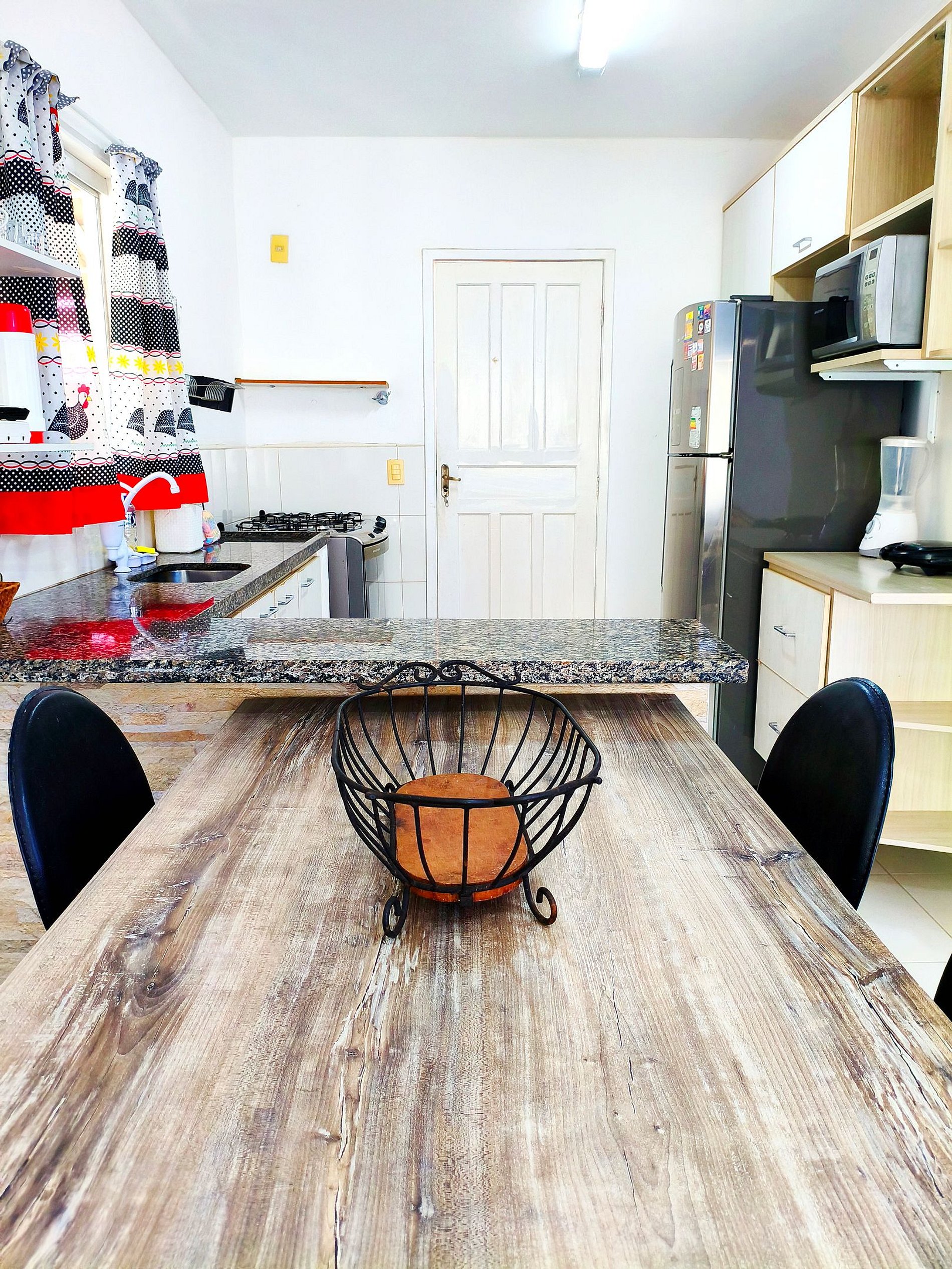- Duas suítes e um quarto com ar condicionado, roupa de cama e banho completa.